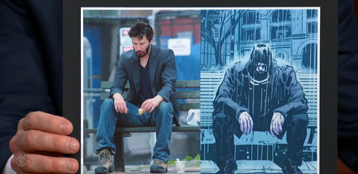 Правда, сам Ривз точно не знает, была ли это отсылка к мему: арт рисовал художник Рон Гарни, не обсуждавший этот вопрос с актером. Но Киану уверен, что грустный герой BZRRKR появился в комиксе не просто так.