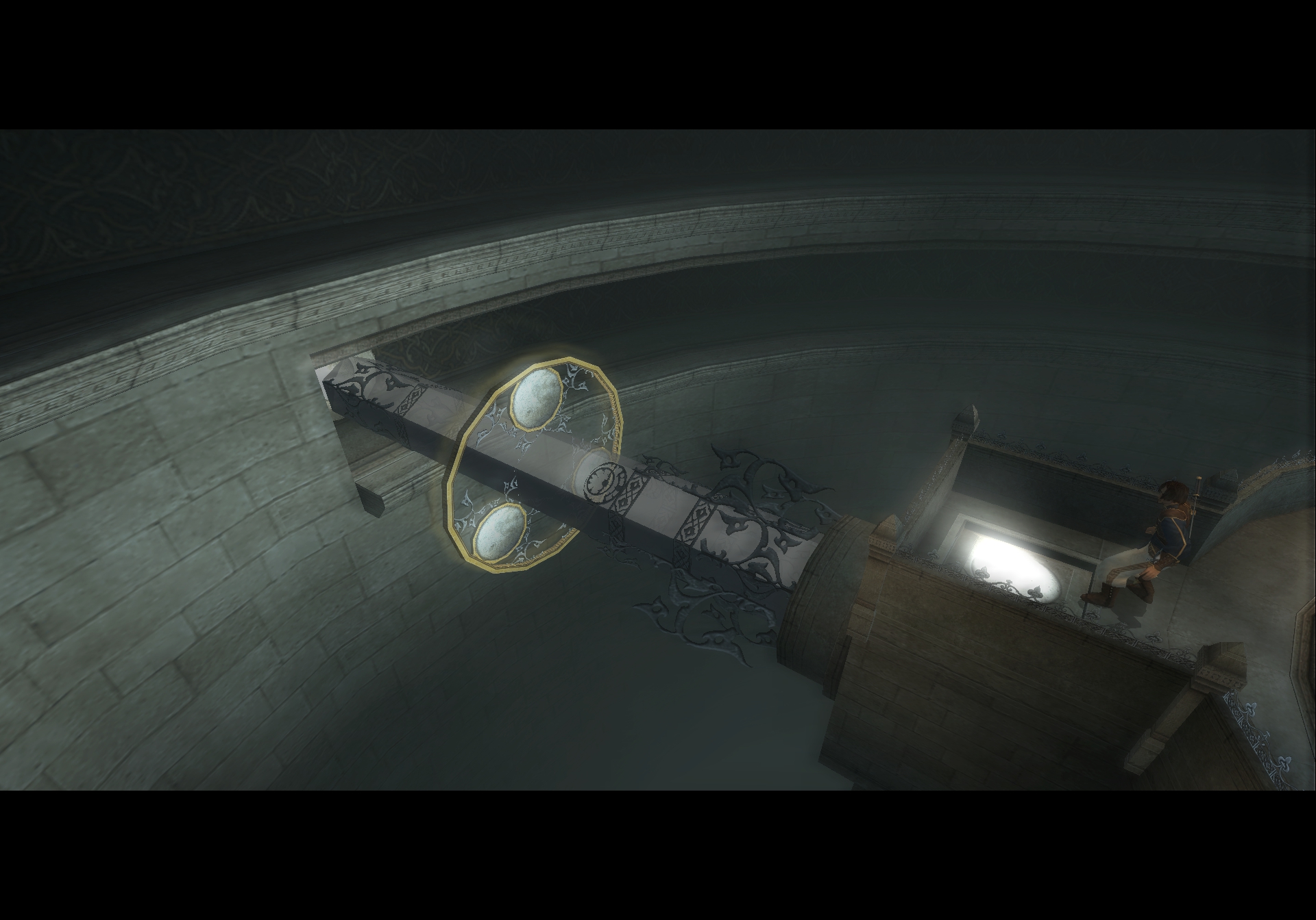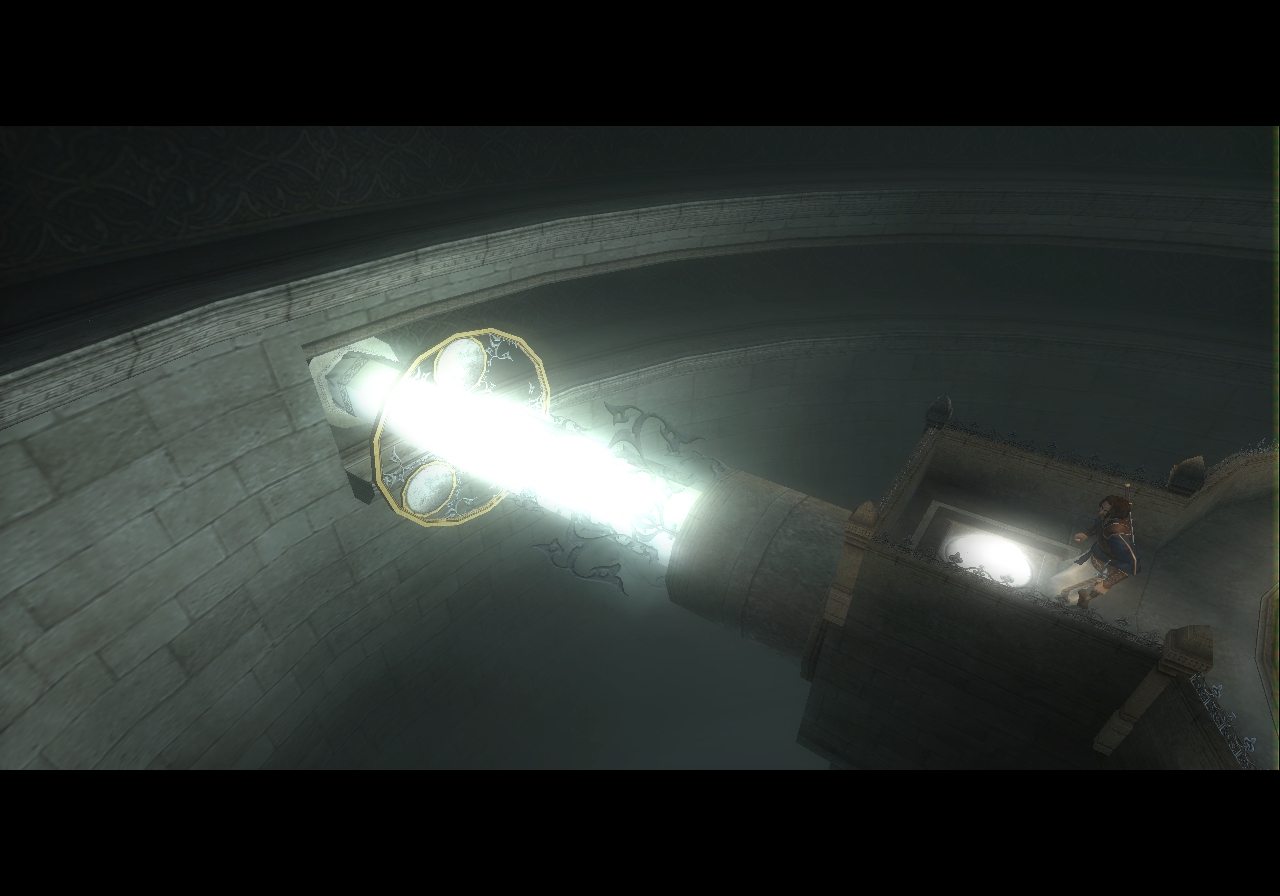 Следующее отличие заключается в видениях. Наверняка вы помните, как проходит сохранение в игре: принц вступает на луч, видит отрывки того, что произойдёт и только после этого нам дают сохранить игру. Тут всё тоже самое, за небольшими исключениями...