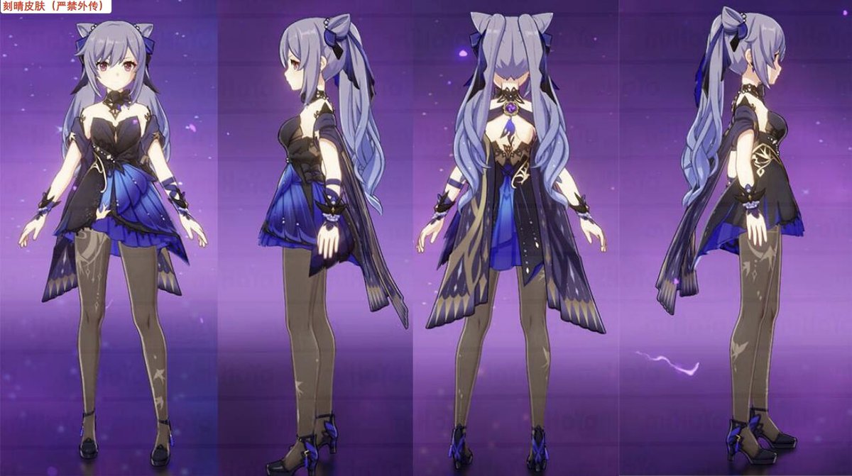Костюм Кэ Цин называется «Яркая легкость»: это короткое черно-синее платье. После релиза обновления 2.4 костюм появится во внутриигровом магазине, до 14 февраля 2022 года его будут продавать со скидкой, за 1350 Кристаллов Сотворения. Затем цена вернется к уровню 1680 Кристаллов.
