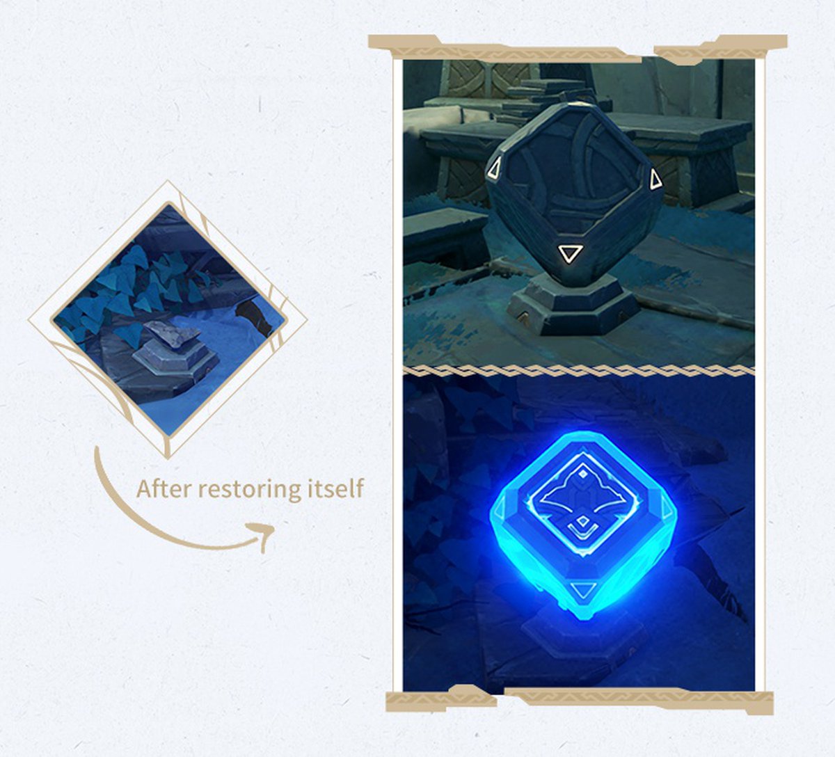 - Треугольные механизмы заряжаются атаками, но некоторые из них могут быть разрушены. Чтобы восстановить механизм, нужно сменить время суток на Вечную ночь.