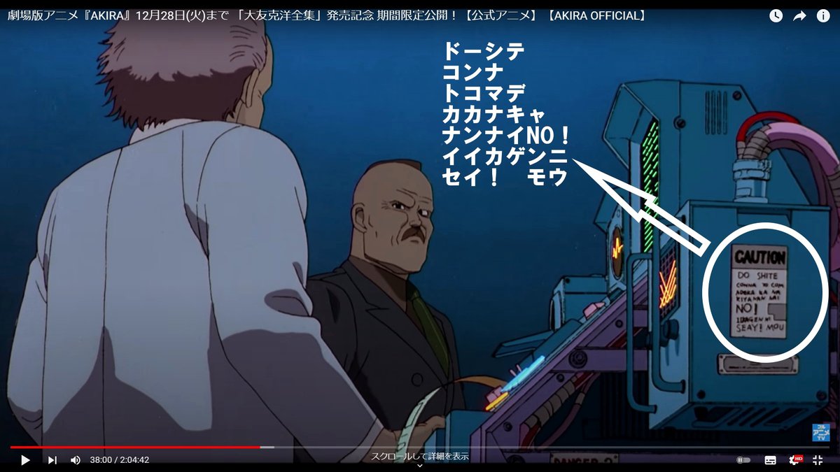 Жалобу заметили благодаря выпуску бесплатной версии «Акиры» на YouTube. Внимание нужно обратить на сцену, мелькающую на 38 минуте видео: здесь показано некое медицинское оборудование с предупреждающей табличкой.