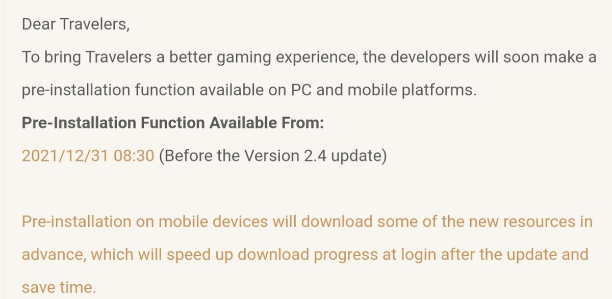Разработчики Genshin Impact раньше обычного откроют предзагрузку обновления 2.4 на PC и мобильных платформах. Загрузить контент обновления можно будет уже утром 31 декабря.