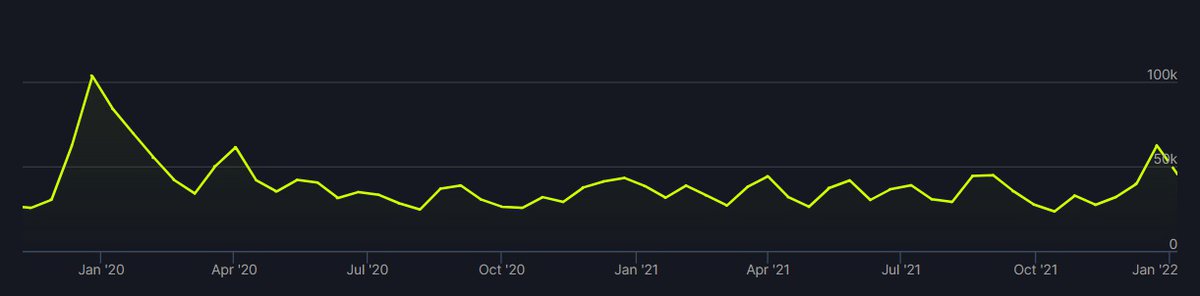 Начиная с 26 декабря онлайн в Steam-версии The Witcher 3 регулярно превышает 60 тысяч человек. Это больше, чем в любой другой день 2021 года; в последний раз игра показывала такие цифры в апреле 2020 года.