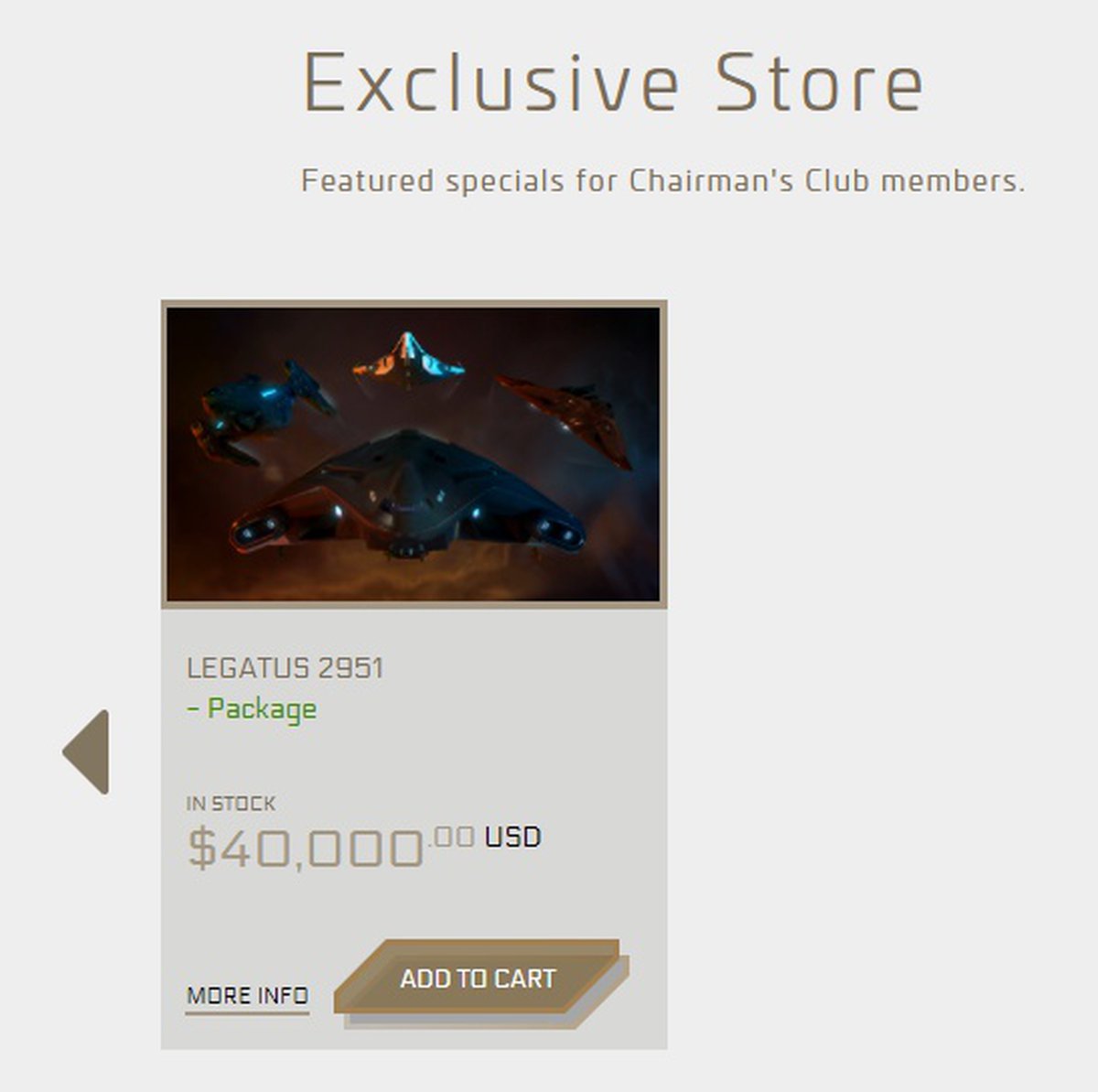 Разработчики Star Citizen добавили во внутриигровой магазин новый пак контента, доступный только членам Chairman's Club. В виртуальный клуб автоматически попадают игроки, потратившие на покупки хотя бы $1000.