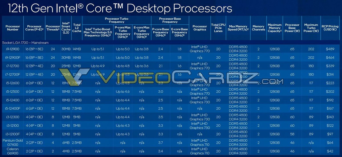Утечка: характеристики, цены и официальные бенчмарки процессоров Intel Alder Lake-S