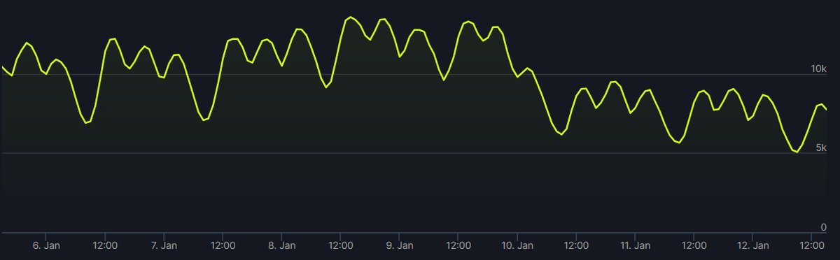 К вечеру 12 января онлайн в Battlefield 2042 опустился до уровня более ранней игры серии, Battlefield 1. Сейчас в Battlefield 2042 играют 7247 человек, в Battlefield 1 находится 6370 человек, а в Battlefield V играют 15032 человека.