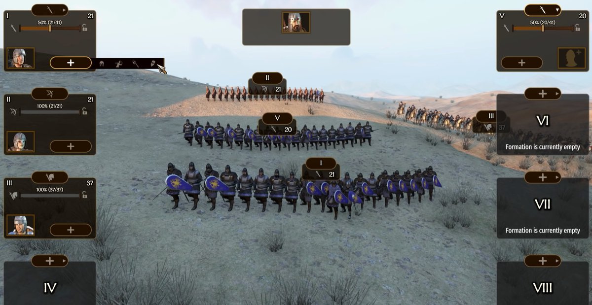 Перед боем теперь можно перераспределять войска, передавая бойцов капитанам, создавая новые подразделения и выбирая их построения. Всего можно создать до восьми таких подразделений.