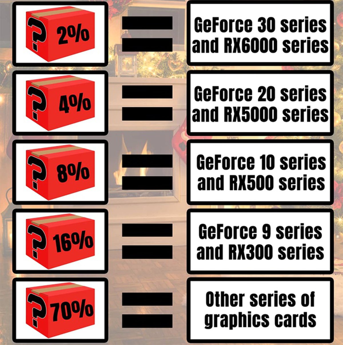 С вероятностью в 70% покупатель лутбокса получит устаревшую карту. Примечательно, что видеокарты семейства Radeon RX 400, некогда популярные у майнеров, в списке не упоминаются.