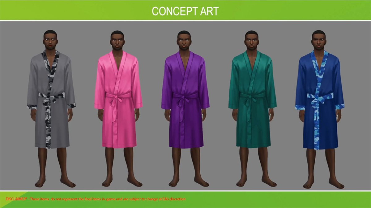 Новая доставка запланирована на 2 февраля. Игроки получат ассеты для редактора симов, созданные ComplexSims. Пока опубликован только концепт-арт с новыми предметами одежды, разноцветными халатами.