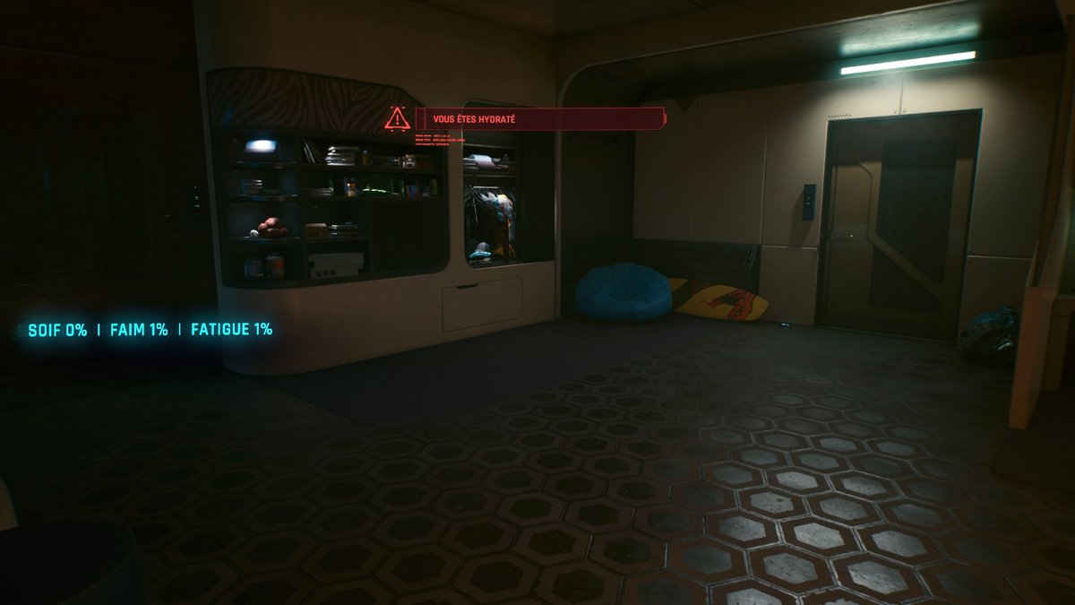Чтобы избавиться от усталости, герою игры надо поспать у себя в квартире. Утолить жажду или голод можно обычными средствами, просто поев и попив. Впрочем, можно попытаться поиграть и с дебаффами; убивать Ви модификация не станет.