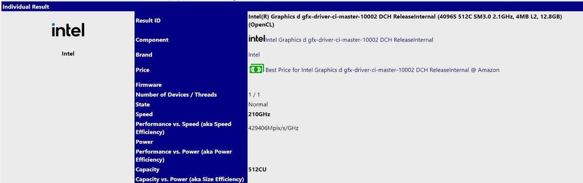 По итогам теста карта показала рейтинг 9017.52 Mpix/s и заняла 941 место в топе SiSoftware. Для сравнения: GeForce RTX 3070 Ti выдает 8369.51 Mpix/s, почти на 8 процентов меньше, чем видеокарта Intel.