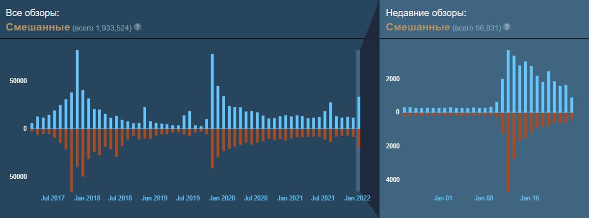 С другой стороны, у PUBG: BATTLEGROUNDS постепенно нормализуются отзывы. После перехода на условно-бесплатную модель недовольные игроки, успевшие купить PUBG, оставили несколько тысяч негативных отзывов, заметно снизив рейтинг игры.
