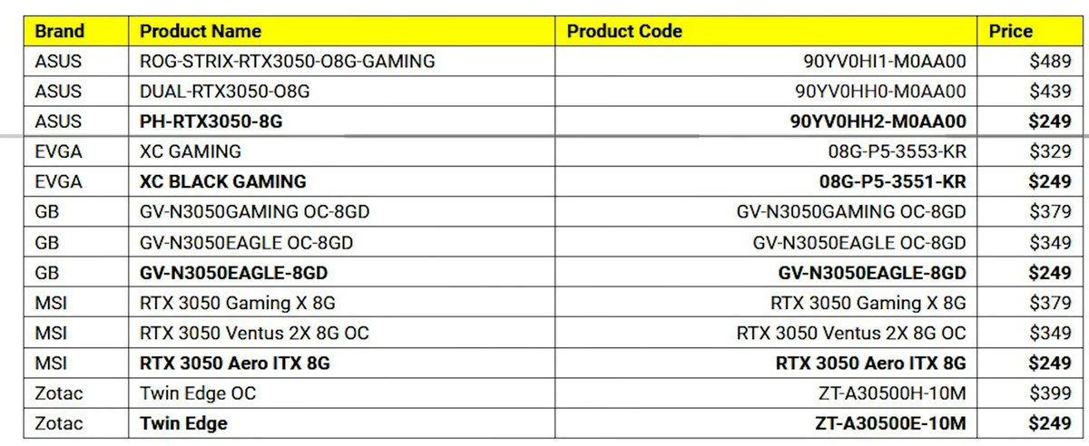 У GeForce RTX 3050 будут модели за $249, в России относительно дешевые карты тоже появятся
