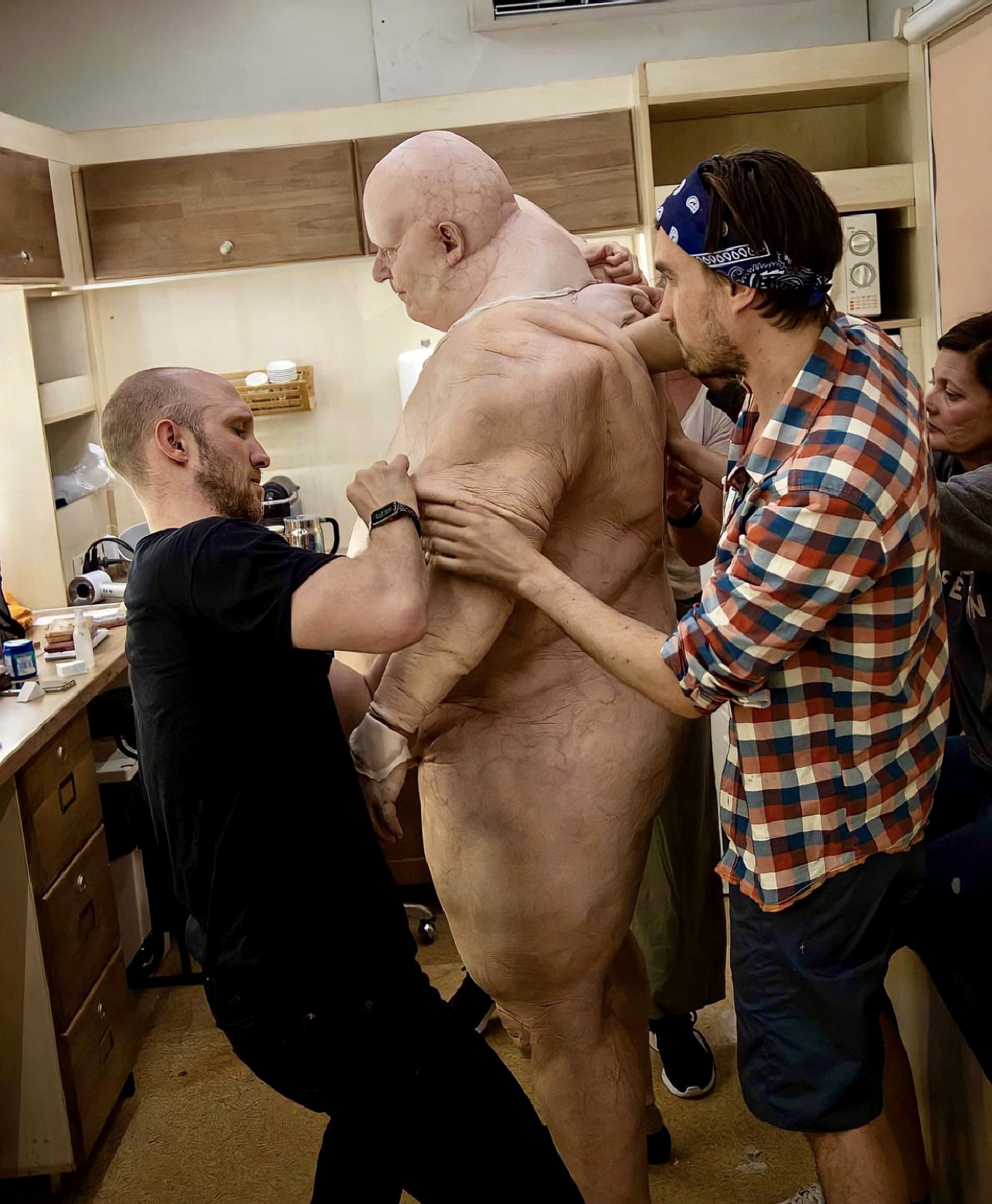 Парадоксально, но голого Владимира было создать тяжелее, чем одетого. Чтобы воссоздать немалый вес персонажа и его массивное тело, дизайнеры разработали 7 накладных элементов, наклеивавшихся на актера.