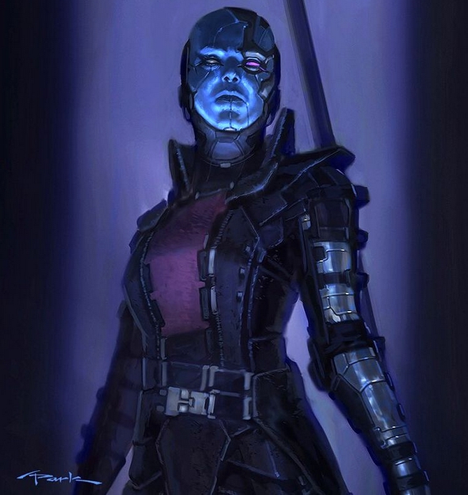 Интересно то, что в комиксах у Небулы какое-то время были волосы. Достаточно длинные и красивые. На первых концепт-артах дизайнеры также изобразили её с различными видами причёсок, но в итоге решили от этой идеи отказаться и перейти сразу ко второму варианту: более лысому и устрашающему.