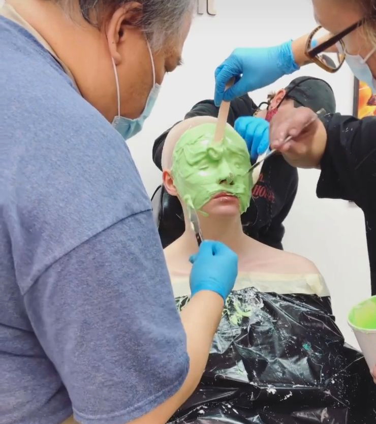 Мы сделали щёки, челюсти, силиконовую лысину и накладки на брови. Для тела были созданы протезы рук, ног и щиколоток.
