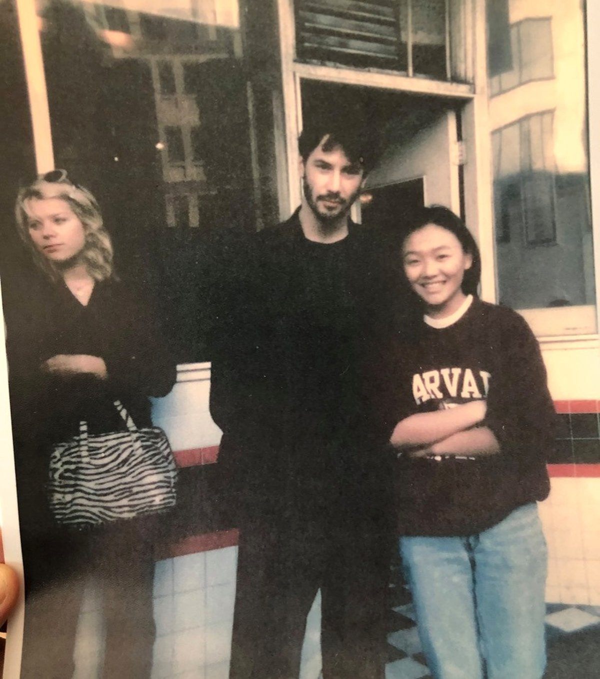 [На фотографии] изображена я, тогда учившаяся в средней школе, вместе с Киану Ривзом, более известным как «мой краш», стоящим в очереди в House of Nanking.