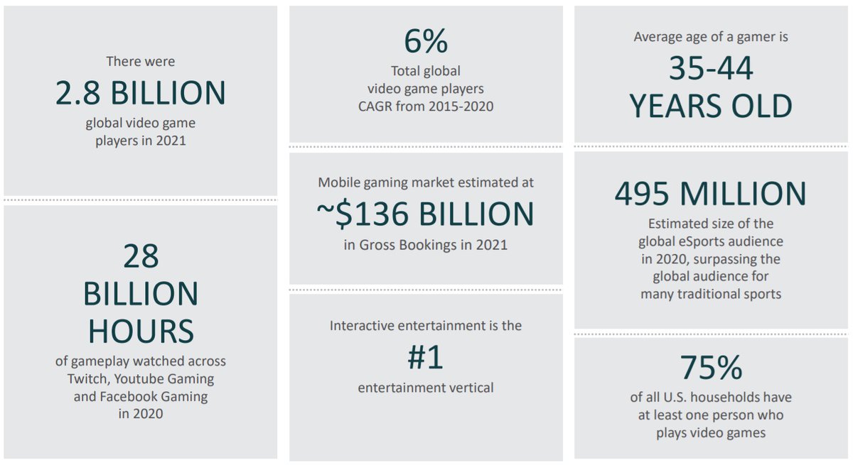 - В 2021 году общая аудитория игровой индустрии оценивалась в 2.8 миллиарда человек.