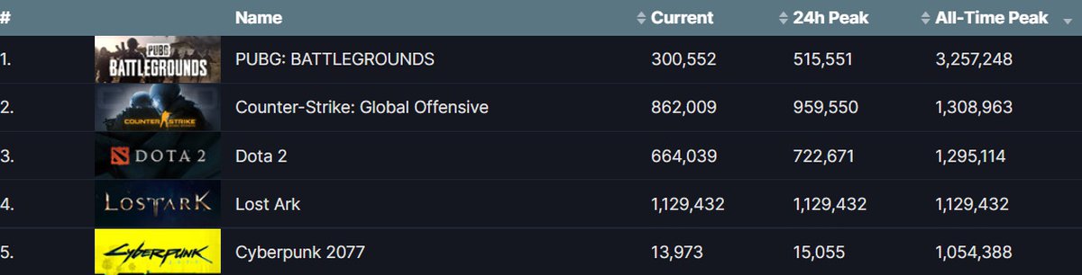 Lost Ark стала пятой игрой в истории Steam, онлайн в которой превысил миллион игроков. Прежде это удавалось PUBG, Counter-Strike Global Offensive, Dota 2 и Cyberpunk 2077. По пиковому онлайну Lost Ark на четвертом месте.
