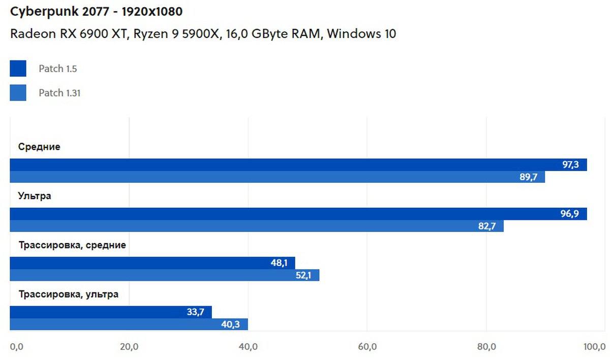 Производительность Cyberpunk 2077 на PC с патчем 1.5 улучшилась без трассировки лучей и ухудшилась с ней