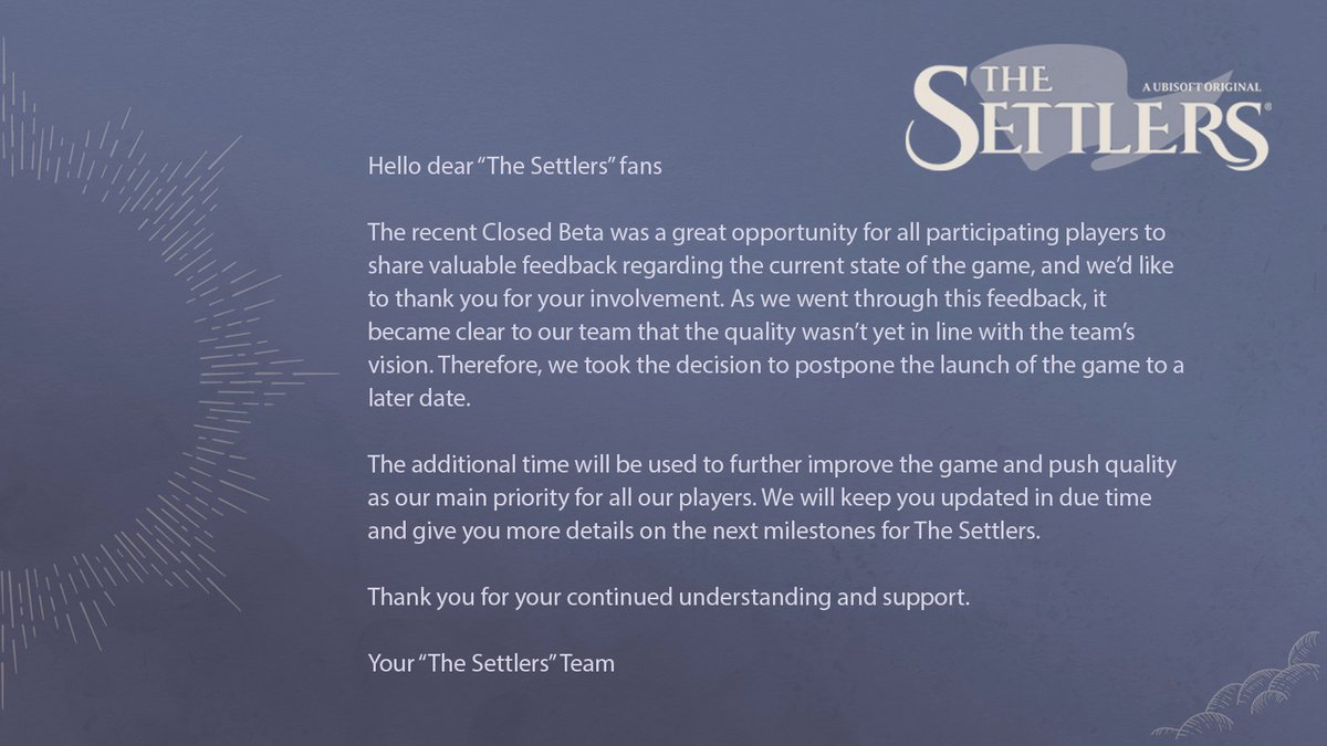 Отложить выпуск стратегии решено после недавнего закрытого бета-тестирования. Изучив полученные отзывы, разработчики сочли, что качество проекта пока не соответствует уровню, на который рассчитывает Ubisoft.