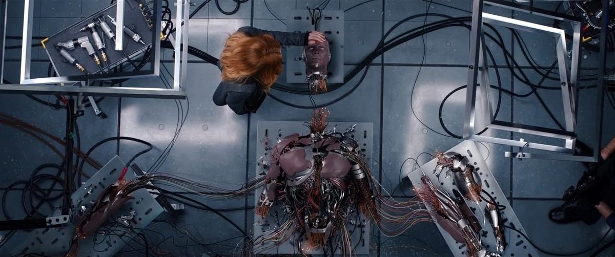 Сандерс придумал для андроида бионические аналоги ключевых органов. На столиках, например, можно заметить аналоги легких, сердца и печени; в то же время видно, что Фил решил сделать Вижена бесполым.