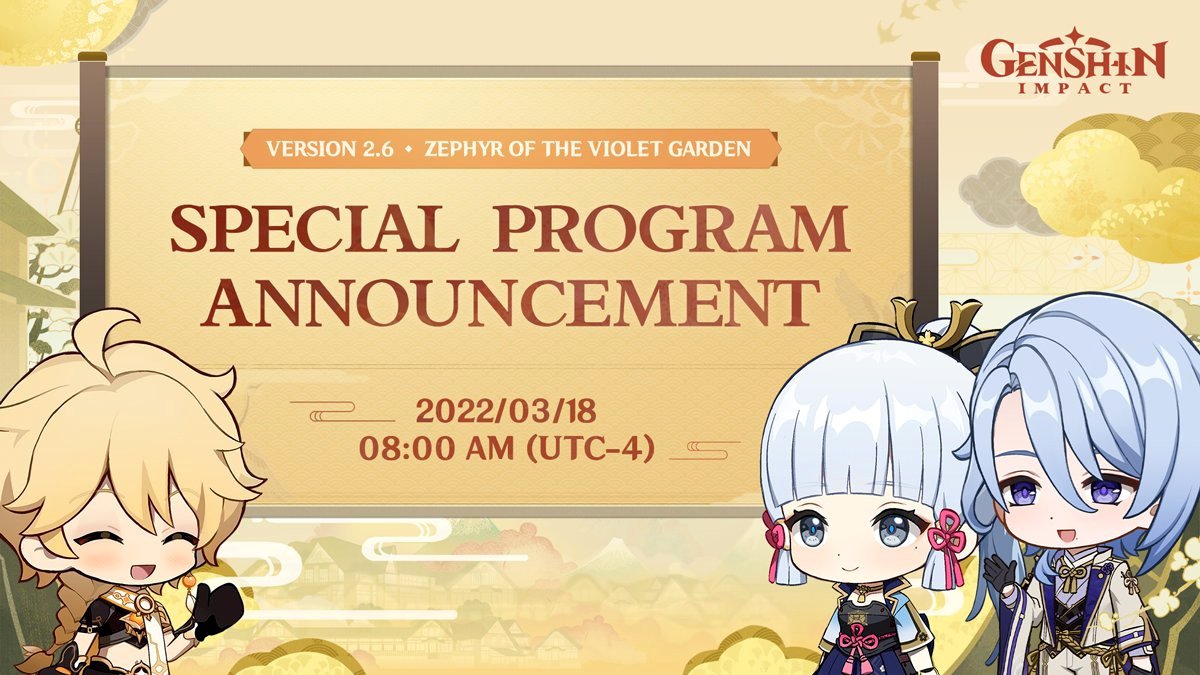 Презентация обновления 2.6 для Genshin Impact состоится 18 марта, сообщают разработчики игры. Трансляция начнется в 15:00 по Москве, ее можно будет посмотреть на канале в Twitch.
