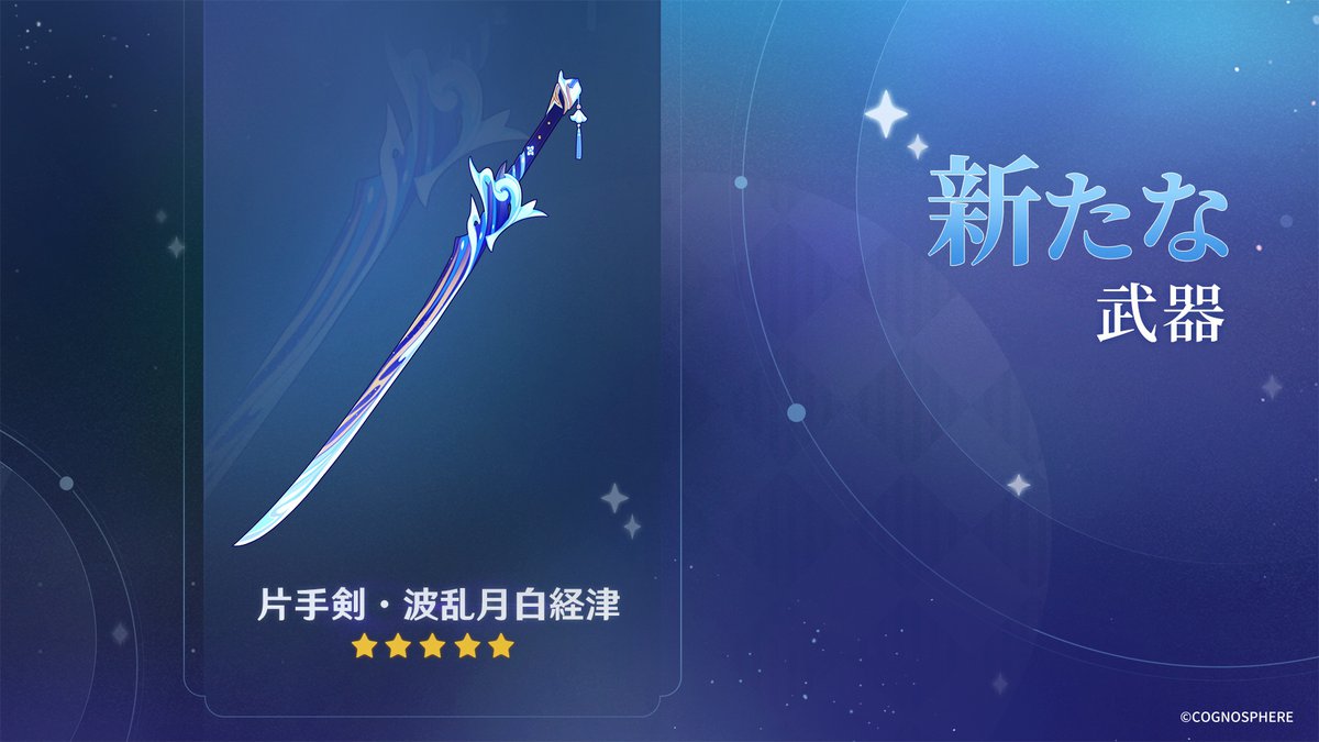 Новое оружие, меч с пятью звездами редкости. Дизайн меча выполнен в стиле Аято.