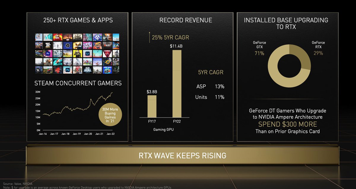 По словам старшего вице-президента Nvidia Джеффа Фишера, у семейства GeForce RTX еще масса возможностей для наращивания аудитории. Согласно подсчетам Nvidia, сейчас карты GeForce RTX есть у 29% владельцев устройств компании, остальные 71% пользуются GeForce GTX.