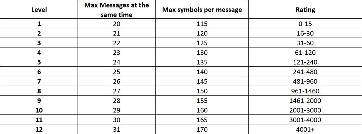 Игроки могут лайкать чужие сообщения, увеличивая их рейтинг и рейтинг автора сообщения. Чем выше рейтинг, тем выше уровень; к нему привязано максимальное количество символов в сообщении и максимальное количество сообщений.