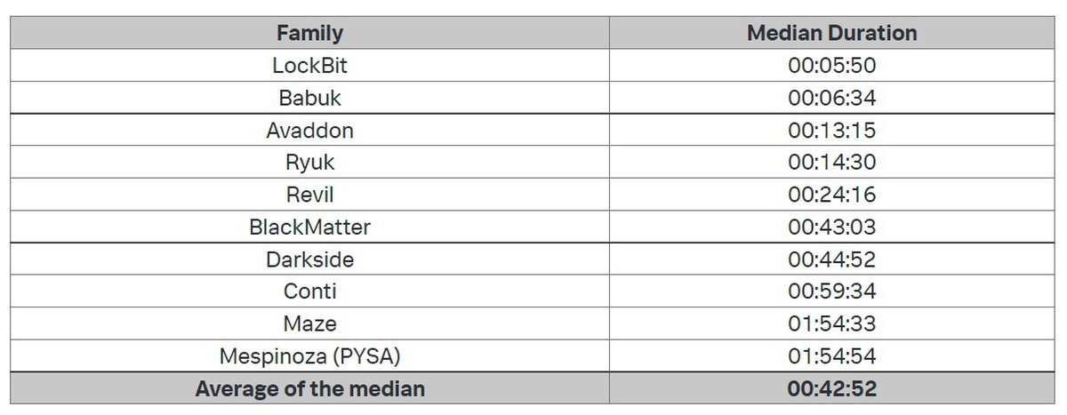 Для сравнения: самое медленное семейство вымогателей, Mespinoza, зашифровало 53 гигабайта данных за 1 час 54 минуты 54 секунды.