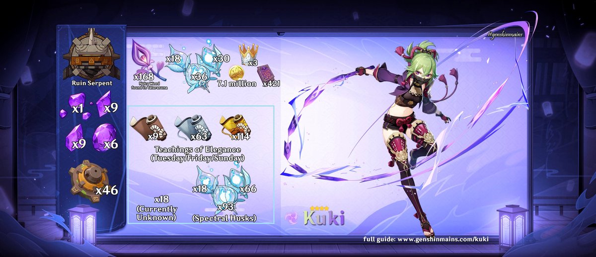 Куки Синобу — персонаж с 4 звездами редкости. Вооружена мечом, специализируется на нанесении электро-урона.