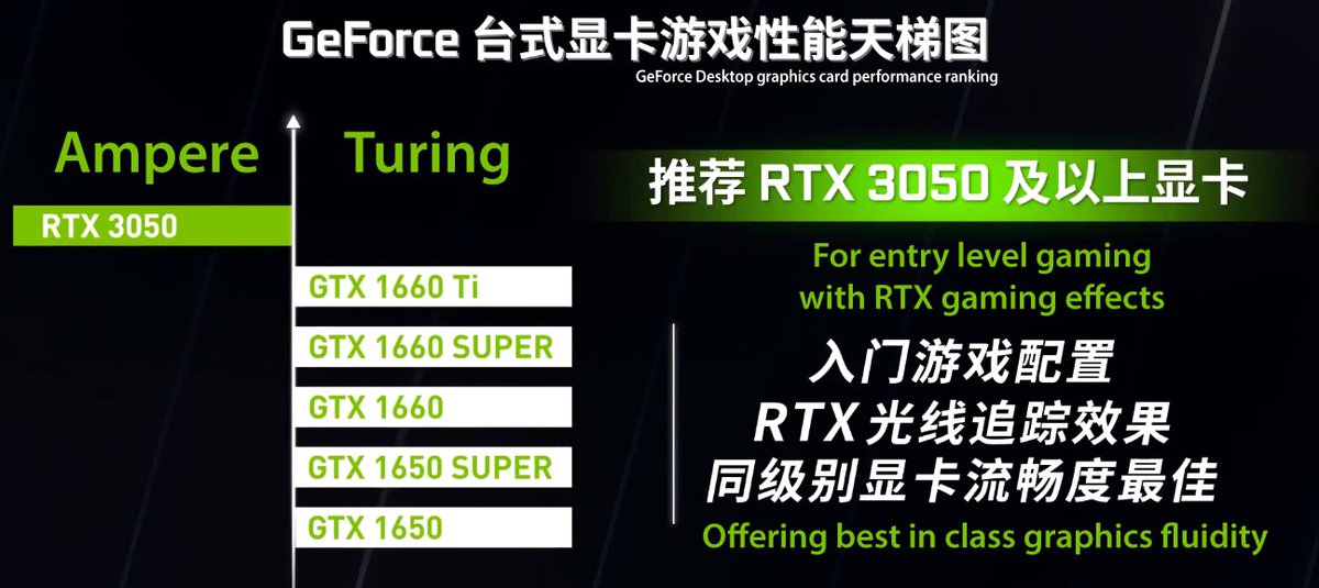 Китайское подразделение Nvidia, обращает внимание Tom's Hardware, подготовило обновленную иерархию своих видеокарт. В ней карты последнего семейства, GeForce RTX 30, сравниваются с устройствами предыдущих поколений.