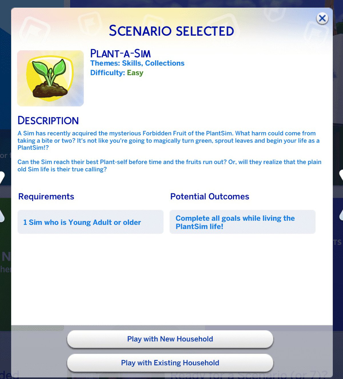 Для выполнения сценария Plant-A-Sim потребуется молодой сим, дети не подходят. К сожалению, в описании сценария не приводятся все трудности, с которым столкнется новоиспеченный ростоман.