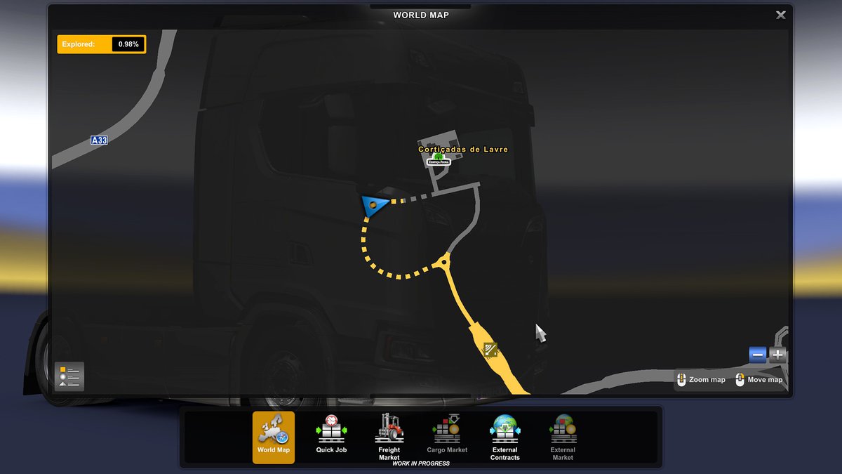 - Скрытые трассы будут отображаться на карте в виде желтых пунктирных линий. Серым цветом отрисован участок дороги, который пока не открыт.