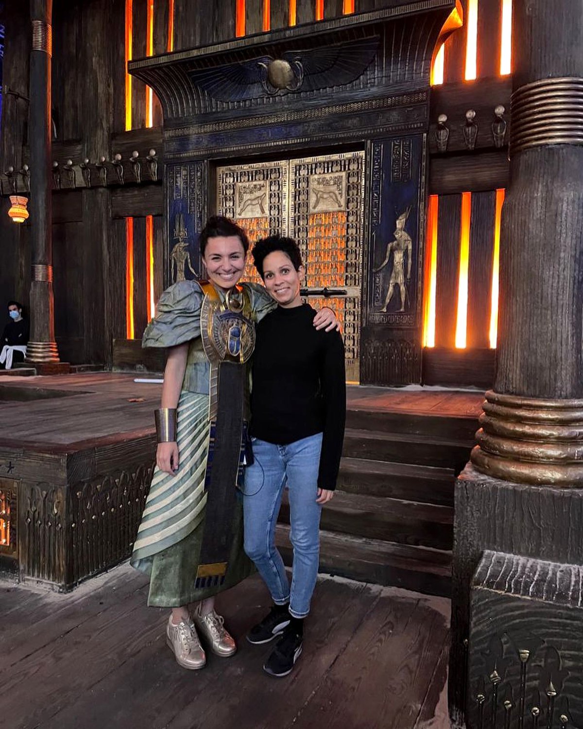 Хотя в сериале Таурт появляется в виде антропоморфного гиппопотама и сделана с помощью компьютерной графики, Салиб все-таки была на площадке. Актриса опубликовала пару фотографий, показывающих, как на самом деле выглядели сцены с Таурт.