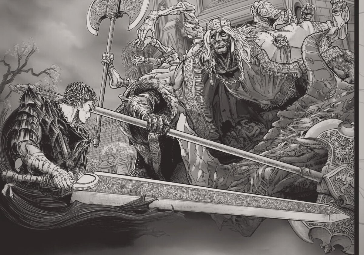 Фанаты Elden Ring давно заметили, что игра From Software наполнена отсылками к манге Berserk Кэнтаро Миуры. Японский художник 黑短髮眼鏡R решил пойти дальше и устроил кроссовер двух вселенных.