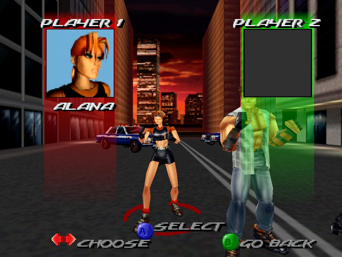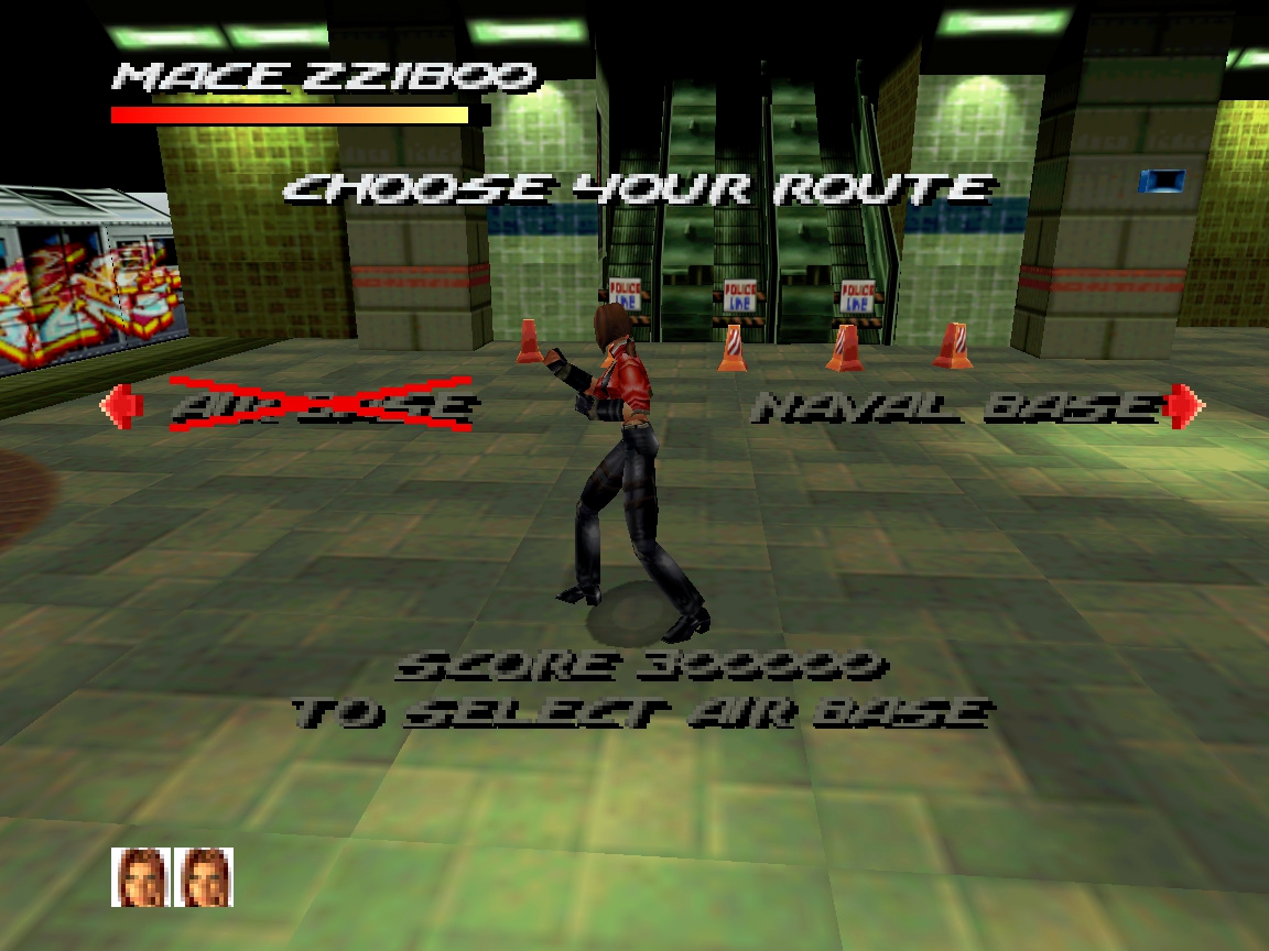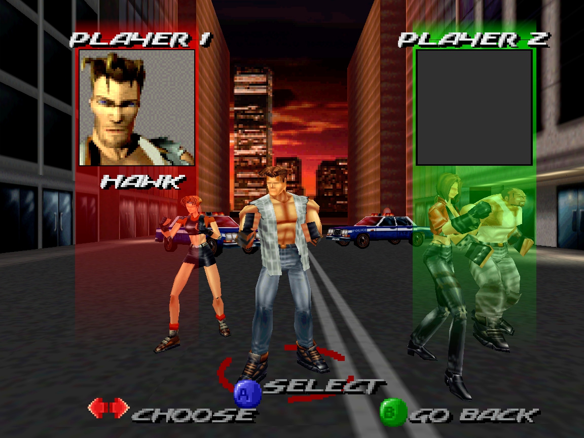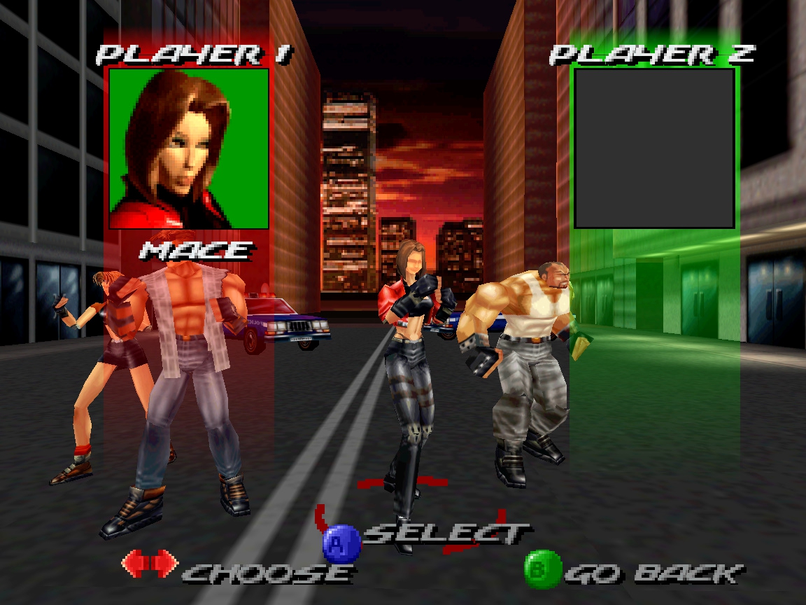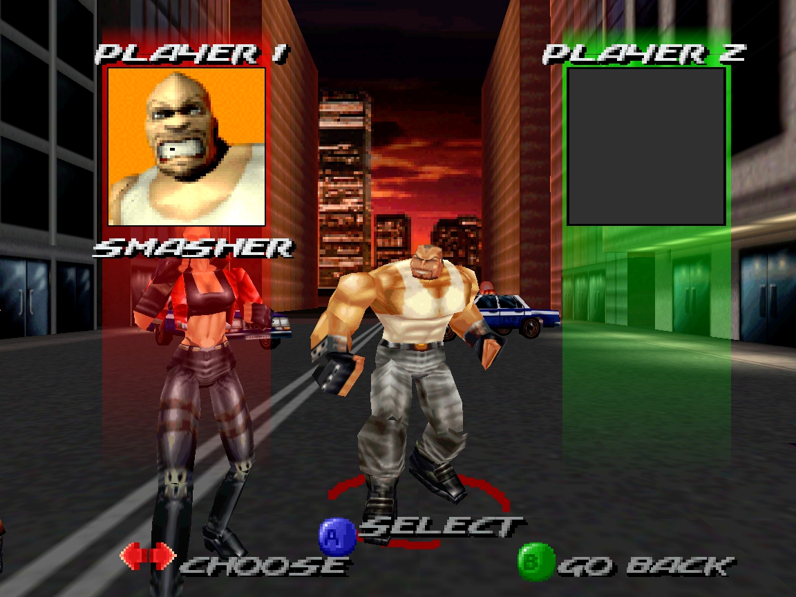 Отличия начинают проявляться с самого старта. Теперь, выбор персонажей сопровождается красочным оформлением меню, где красуются портреты героев в CGI графике. Эти же портреты появляются при вводе имени. Выглядит здорово... Пока не замечаешь один большой минус – лица героев стёрты! Я не имею и малейшего понятия, зачем нужно было стирать лица персонажам, ведь Nintendo 64 даже немного мощнее PlayStation, да и памяти на картридже достаточно для игры.
