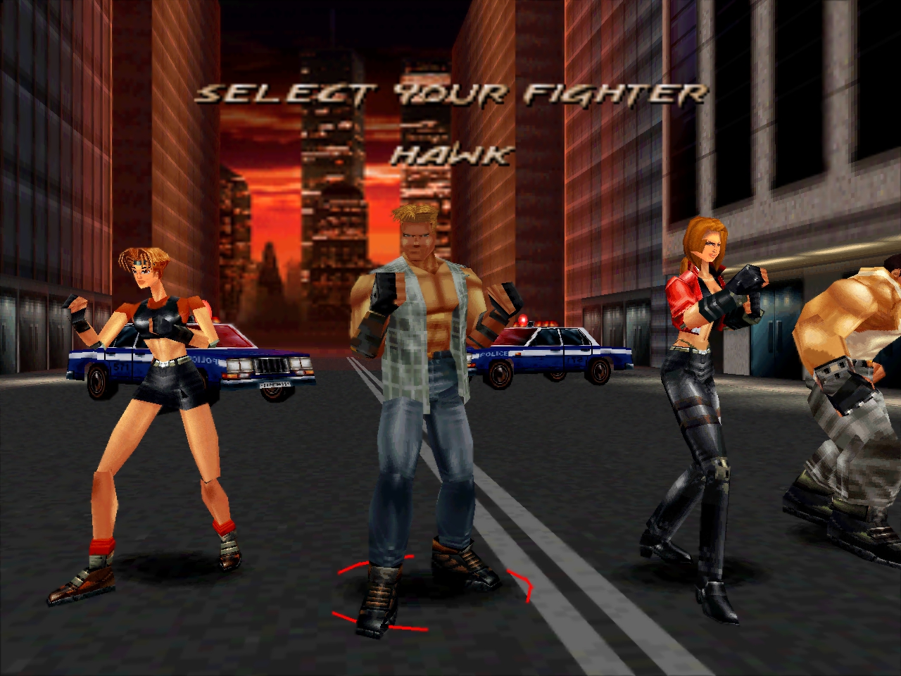 Следующее отличие выявляется прямо после выбора количества игроков – персонажи выглядят иначе. Изменения на персонажах коснулись только их голов. Алане убрали губную помаду и заменили глаза, Hawk стал блондином и лицо покраснело, Мейс отделалась лишь перекраской волос, а Smasher отрастил побольше волос и покрасил их в чёрный цвет.