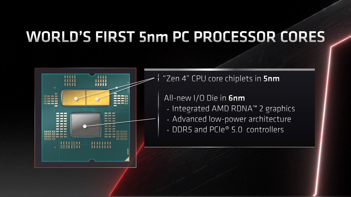 - Zen 4 — первая в мире архитектура процессоров для PC с 5-нм техпроцессом вычислительных ядер (для блока ввода-вывода используется 6-нм техпроцесс).