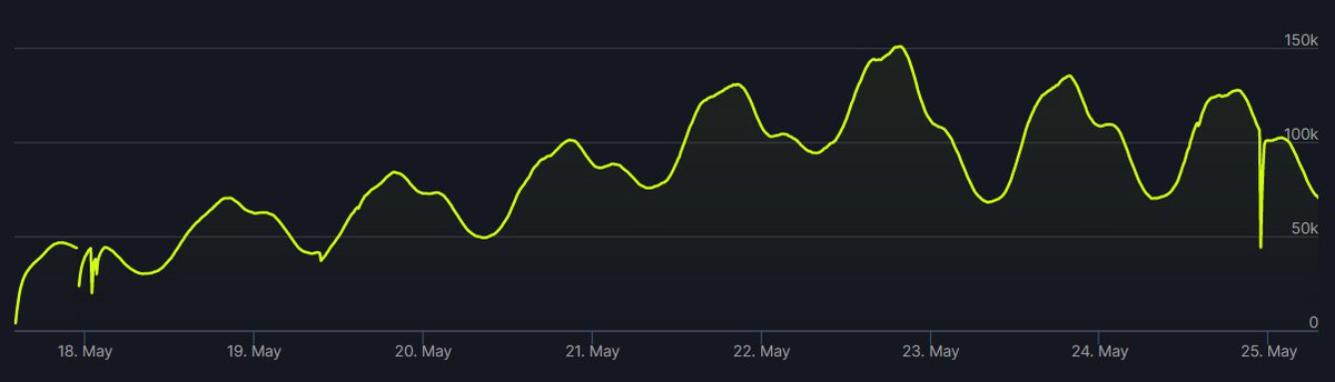 На старте V Rising удалось возглавить недельный чарт Steam. К концу первой недели релиза пиковый онлайн в V Rising превысил 150 тысяч игроков, судя по динамике, на следующей неделе рекорд может быть побит.