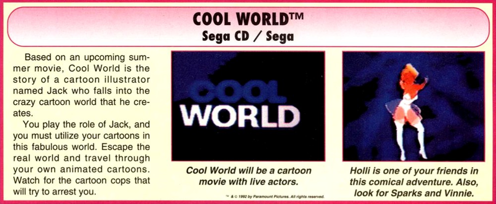 Игра по одноимённому фильму (в нашем переводе: Параллельный мир), разрабатываемая Sega. Если верить описанию из журнала Mega Play №11, игра разрабатывалась до выхода фильма. В игре вы управляли Джеком, с использованием кадров из фильма (или оцифрованных персонажей, не указанно). По мере прохождения, за Джеком охотились полицейские, а помощницей в этом нелёгком путешествии выступала главная героиня фильма – Холли Вуд.