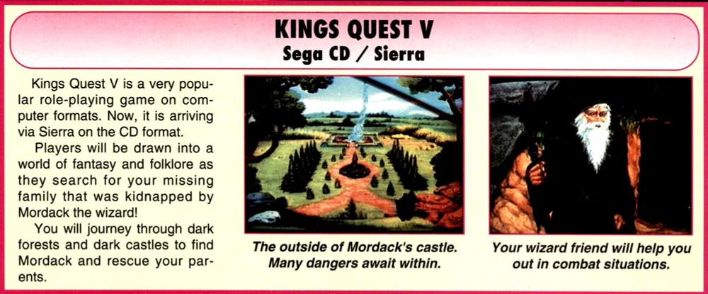 Порт квестовой игры, который разрабатывался и планировался к издательству кампанией Sierra On-Line. Выход порта для Sega CD намечался на декабрь 1992 года, затем игру перенесли на 1993 год, после чего игра для Sega CD стала историей.