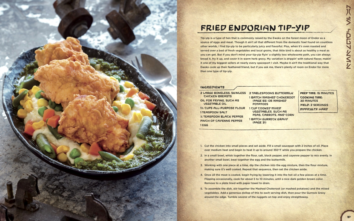 По вселенной «Звёздных войн» тоже создали неимоверное количество кулинарных книг разной степени наполненности. Официальные и нет, в них можно найти как воссозданные из фильмов блюда, так и стилизованные, которые отлично подойдут для тематической вечеринки.