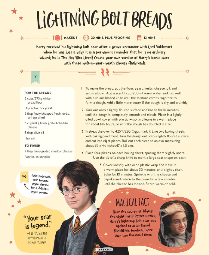 В основном в книге приведены обычные, но стилизованные под фильмы рецепты, подходящие кулинарным новичкам, которые давно хотели испечь крендель в форме змеи.