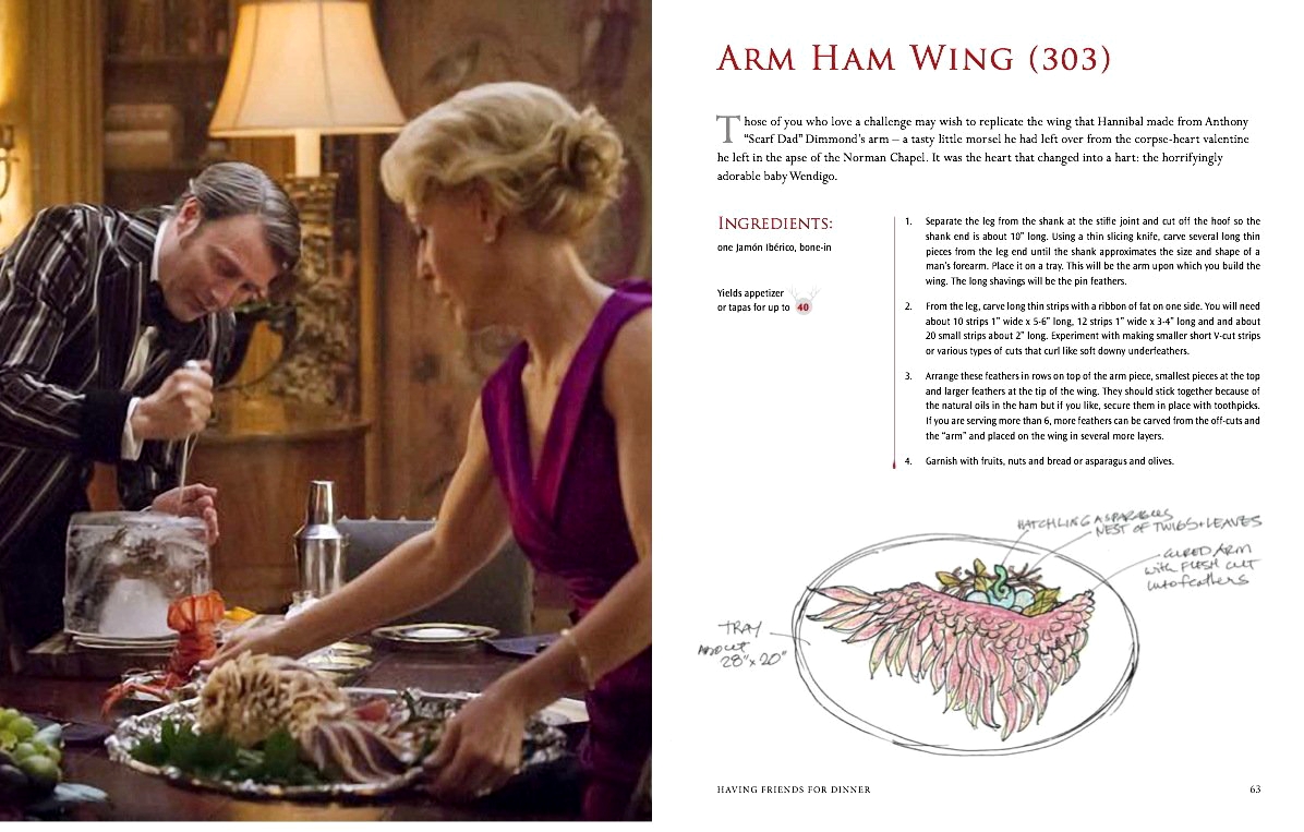 Кулинарная книга по самому не-гуманному сериалу находится на уровне трёх звёзд Мишлена, а сами блюда утолят даже самый изысканный творческий голод. Поэтому если вы не отличаете пассеровку от бланширования, считаете, что льезон — это фамилия французского футболиста, а шпигование ассоциируете со шпагами, то у меня для вас плохая новость — нежный аромат малинового пюре на тонком, словно лист, куске говядины так и останется всего лишь словами.