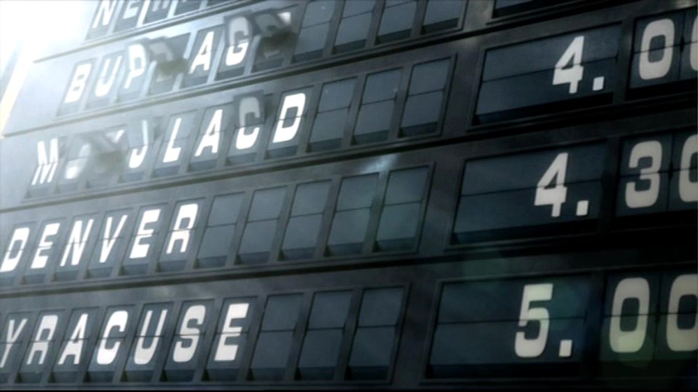 После самолёта показывается табло с расписанием рейсов, чего в фильме не было даже и секунды.