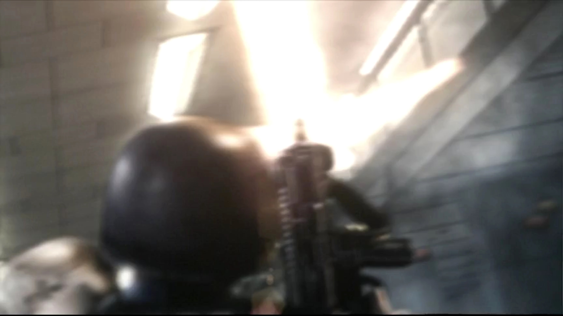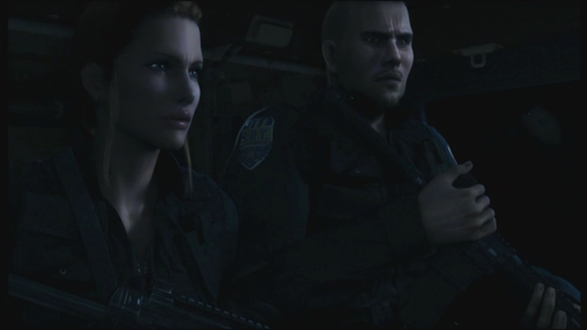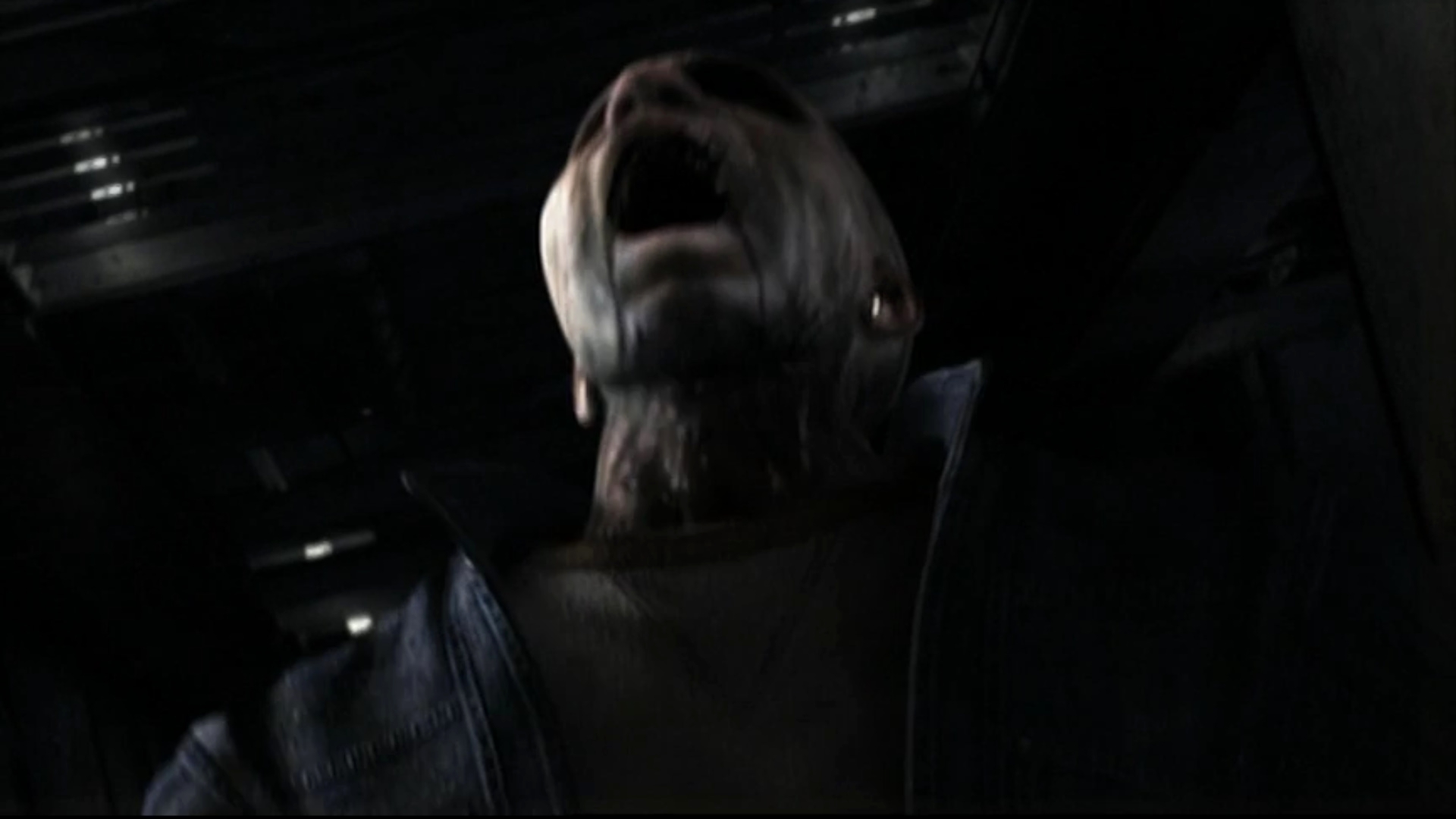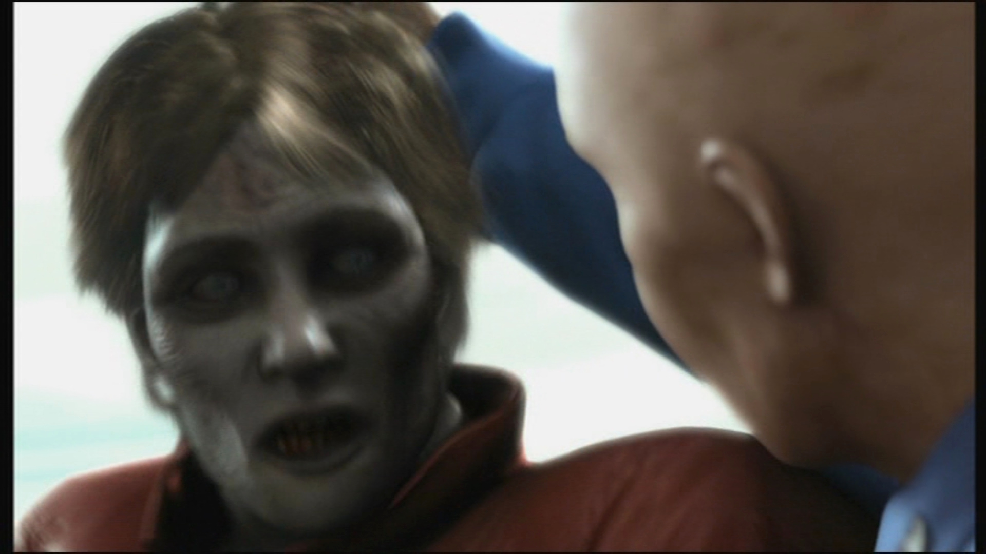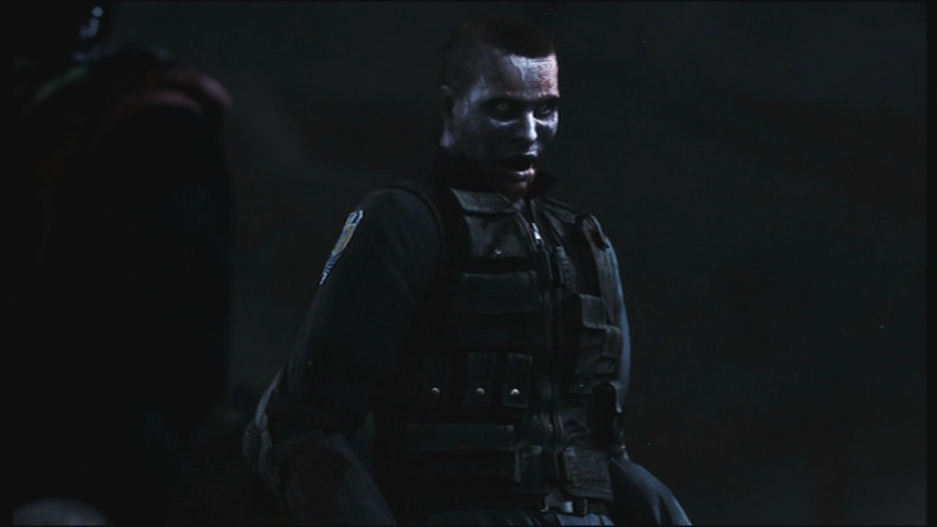 Вот тут начинает проясняться кое-что интересное... Зомби, который в финальной версии фильма выглядит иначе, нападает на полицейского, который также выглядит иначе... Интересно в этом то, что полицейский похож на спецназовца службы спасения, появившегося в игре на N-Gage! Более того, полицейский вооружен не пистолетом, а автоматом и умирает он не от нападения одного зомби, а от двух и более. В фильме, полицейский не успевает реагировать на нападение зомби и умирает практически сразу, после чего, телохранитель Рона Дэвиса пытается помочь охраннику, но погибает от толпы зомби.