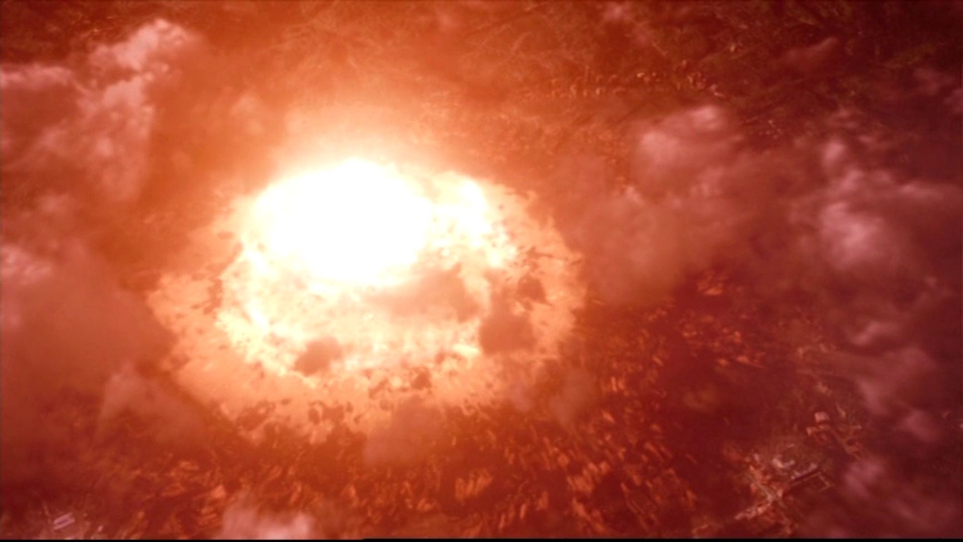 Начинается тизер с уничтожения Раккун-Сити, показанное с высоты птичьего полёта. Данный кадр не попал в фильм. В фильме, уничтожение города продемонстрировано от лица репортёра, снимающего репортаж об бомбардировке.