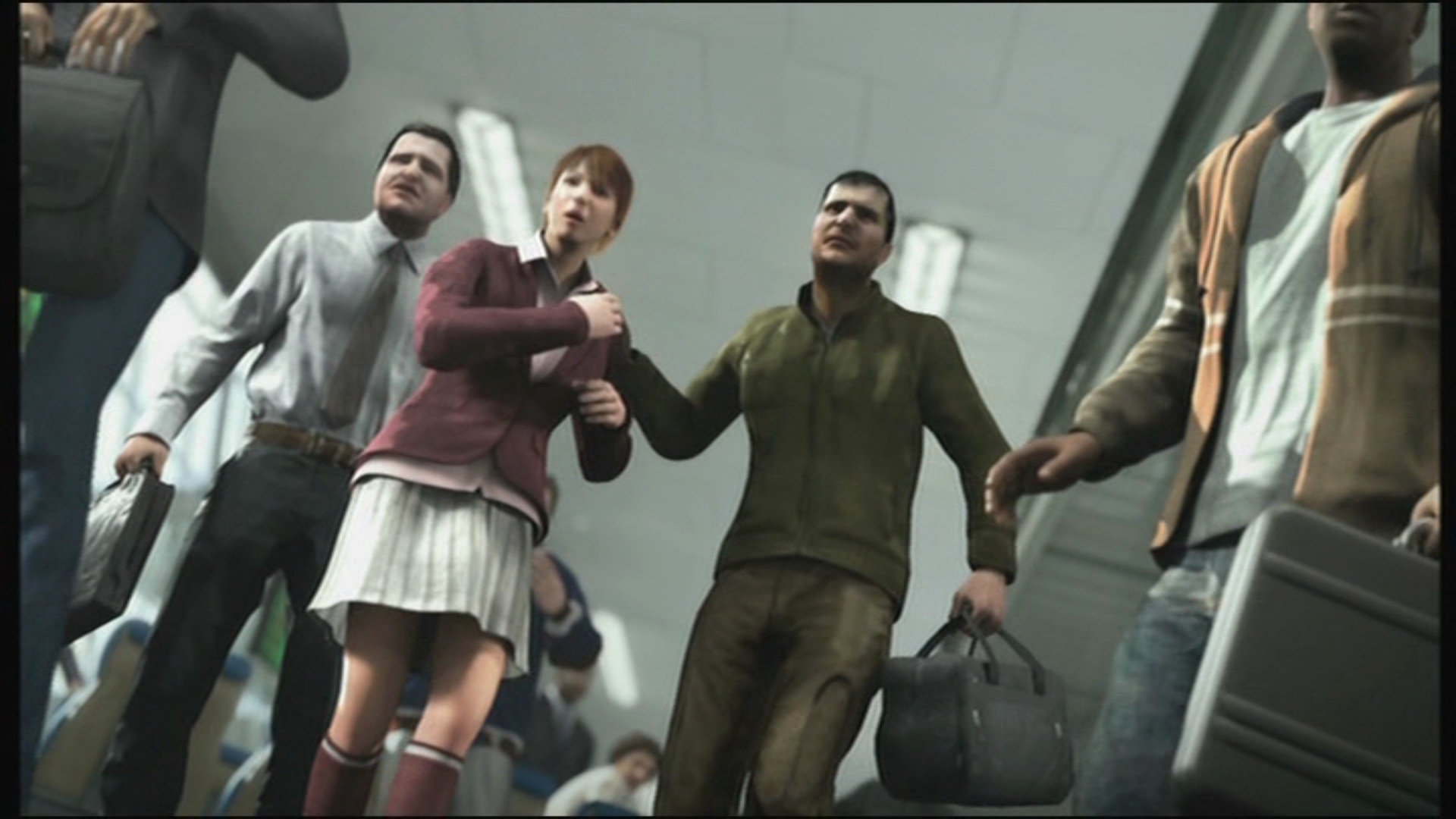 После показа Леона нас перенаправляют снова в аэропорт, на момент, когда началось заражение.